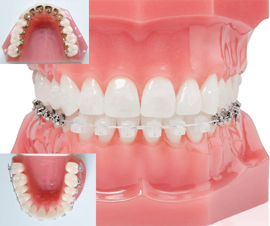 目立ちやすい上の歯には矯正装置を裏側に取り付け、下側の歯には表側に矯正装置を取り付けます。フルリンガルに比べ目立ちにくく舌の違和感や発音への影響が少なく、費用も抑えられます。